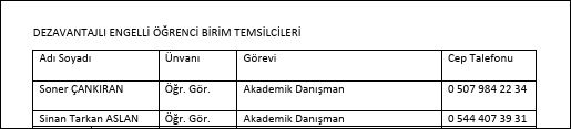Dezavantajlı Gruplar Akademik Danışman ve Öğrenci Temsilcileri TIKLAYINIZ.